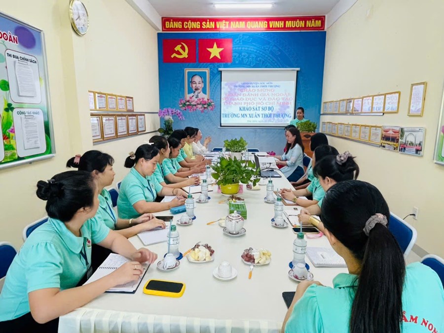 Đoàn đánh giá ngoài làm việc tại Trường MN Xuân Thới Thượng